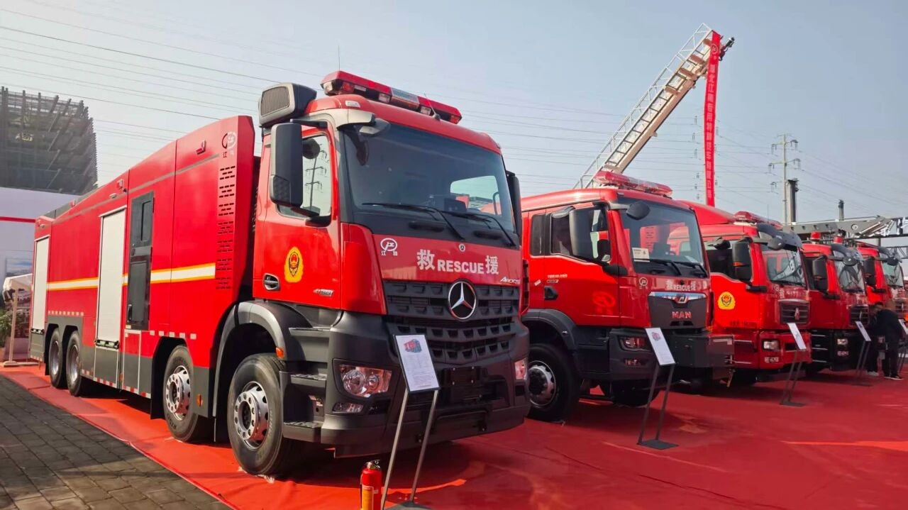 2025年10月13日,以“科技赋能实战,助力产业发展,服务消防救援”为主题的第二十一届中国国际消防设备技术交流展览会(简称“中国国际消防展”)在北京市顺义区中国国际展览中心新馆盛大开幕。 湖北江南专用特种汽车有限公司作为深耕应急消防领域17年的国家重点“专精特新小巨人”企业,本次携10台兼具创新性与实用性的消防车辆参展,覆盖城市灭火攻坚、应急排涝、森林远程供水灭火、特种装备运输等多场景、多工况的应急救援需求。奔驰底盘18吨高层供水消防车、德国曼四驱底盘森林消防车、大流量排水抢险车、多功能城市主战消防车、四驱